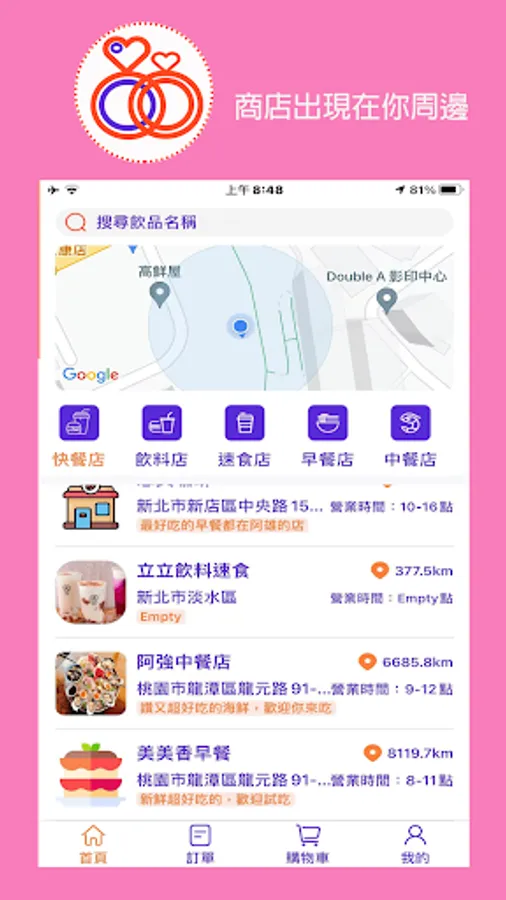 There are breakfast restaurants, Chinese restaurants, Western restaurants, and beverage shops all over Taiwan. After ordering food directly from the store online, the delivery staff will deliver the order.