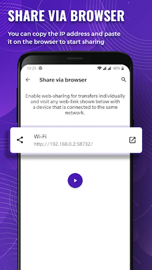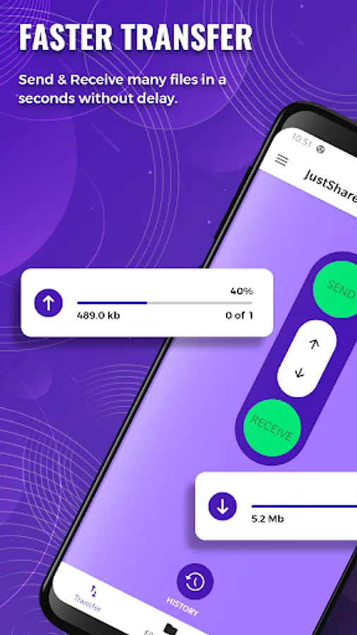 Quickly share images, videos, music, apps, and files between mobile devices anytime.
