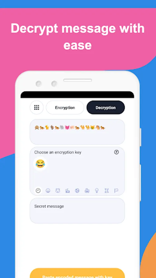 The encrypted messages are full of emoji, fun to display and easy to decode; if you know the right key!.