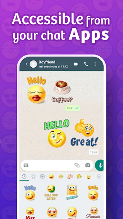 β Great animated stickers for WhatsApp (WASticker) Snapchat, Facebook, emoji for Facebook Messenger, compatible with Telegram, WeChat, IMO, Viber, Kik. It's also great for your emails, text messages (MMS) and your Instagram story.