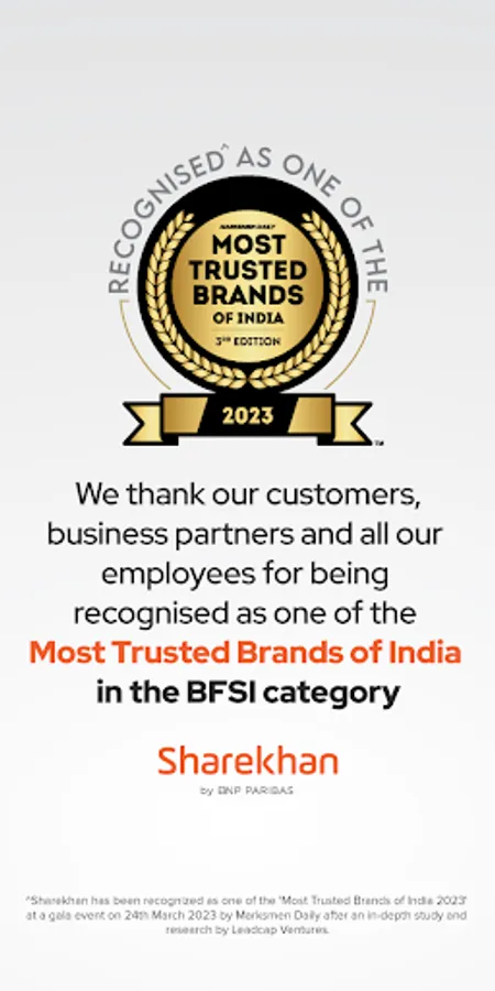 - Sharekhan has been recognized as one of the Most Trusted Brands of India 2023