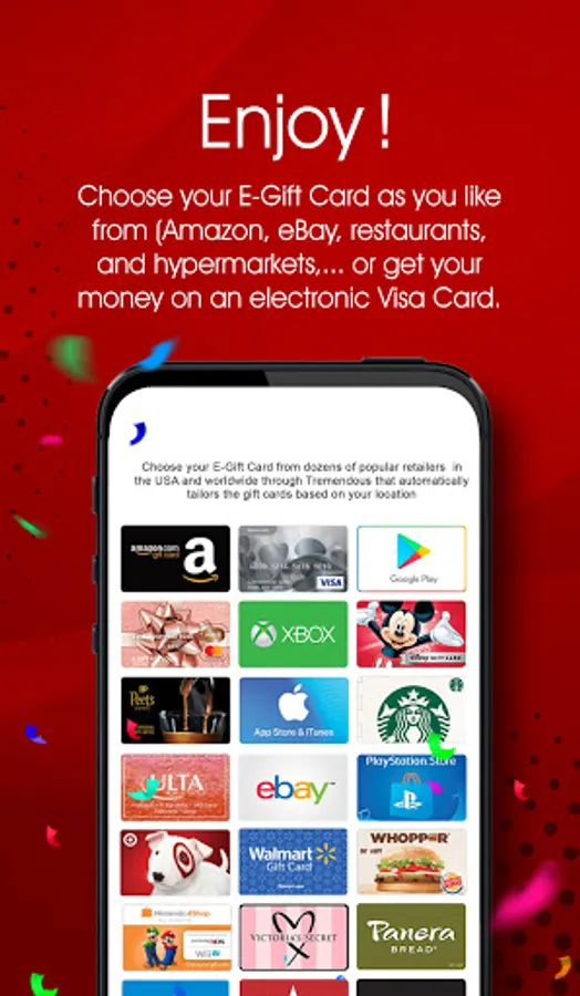 - Choose your eGift Card from dozens of popular retailers in the USA and worldwide through Tremendous (www.tremendous.com) that automatically tailors the gift cards based on your location.