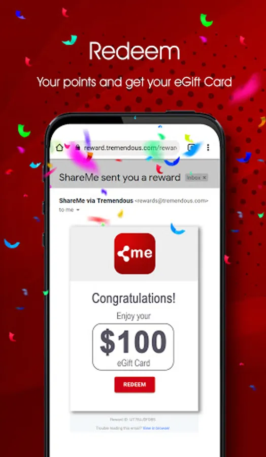 - Redeem your points for eGift Card ($10, $25 or $100).