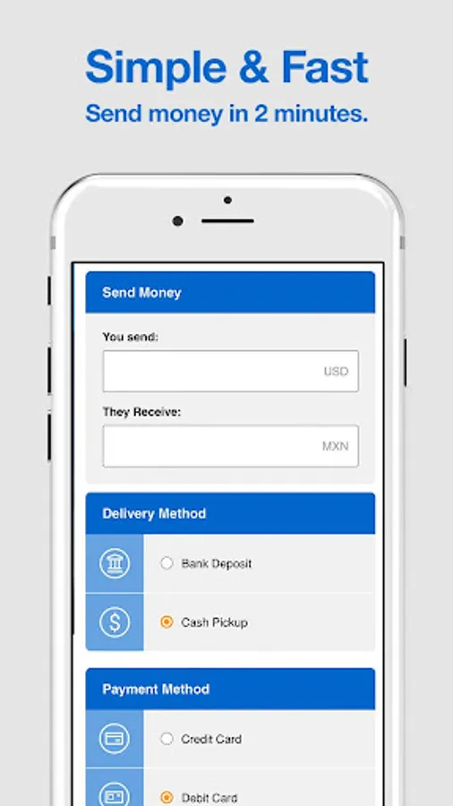 - Depending on the recipient's country, you can choose to send money via direct bank deposit, cash pickup, or in some cases home delivery!