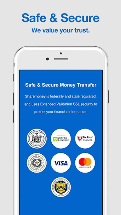 - Sharemoney is federally and state regulated, with Extended Validation SSL security behind every transaction