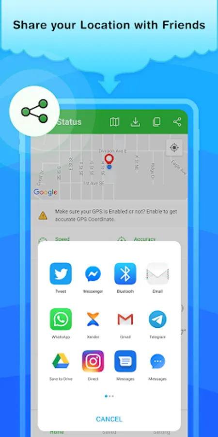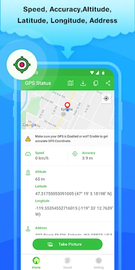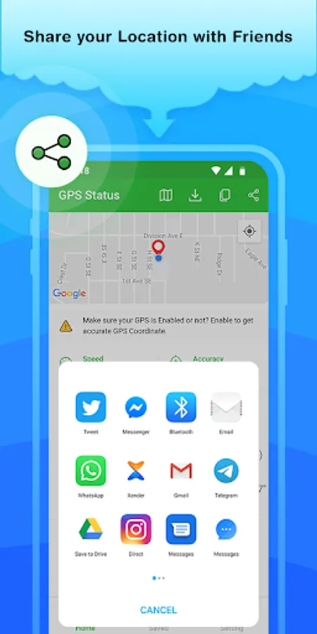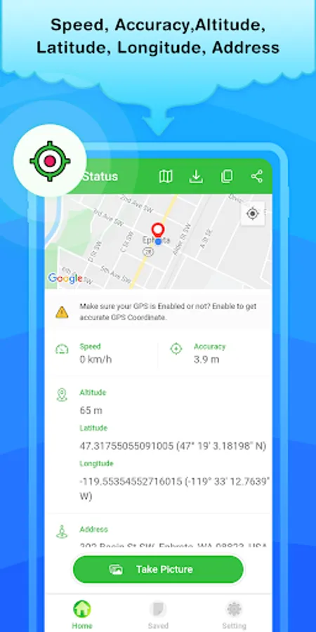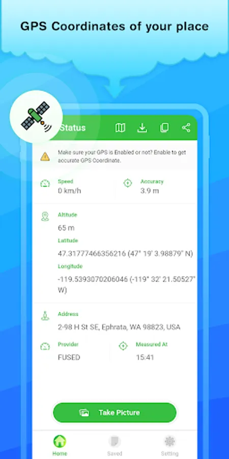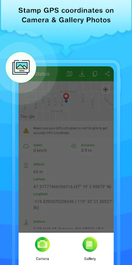 Enable GPS in Phone and get accurate GPS coordinates, not only that, you can save Location of places with custom names, and share your camera or Gallery Picture having GPS coordinates with Family & friends.