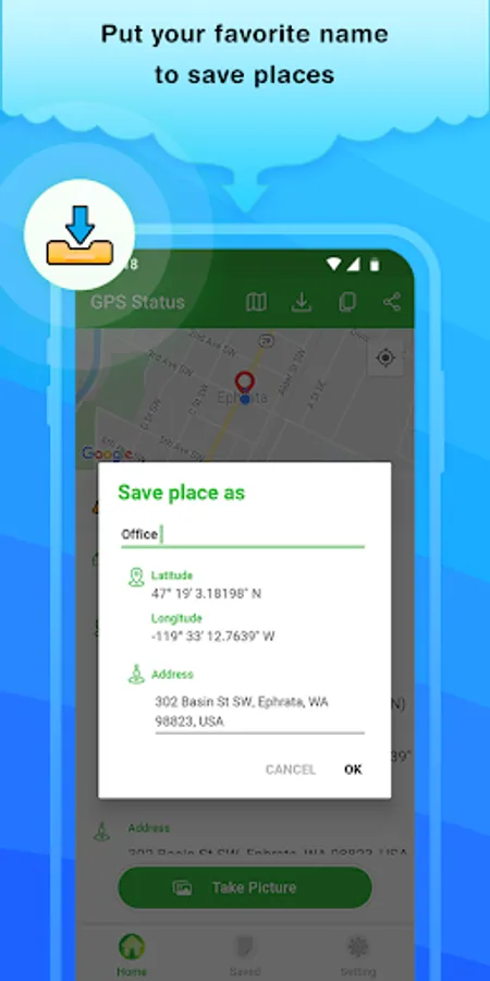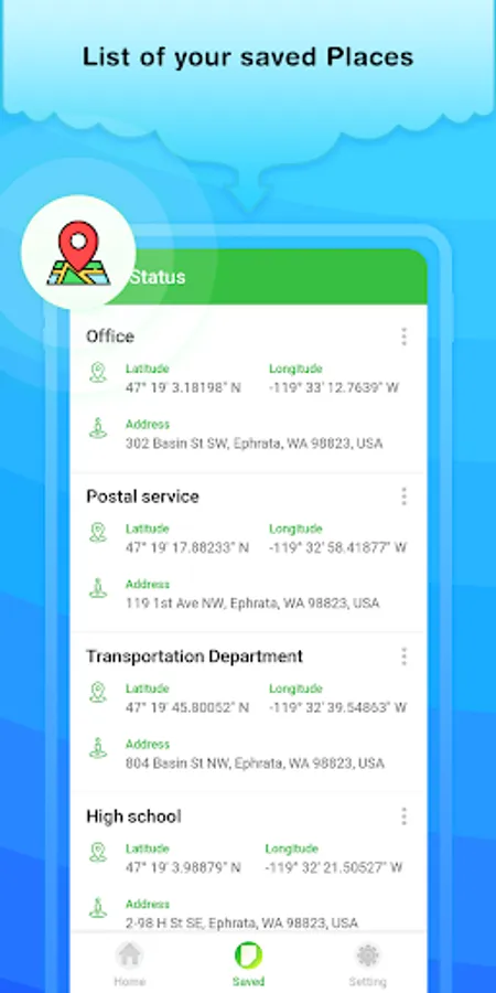 ✶ Save place having latitude longitude And Address in a list form, surprisingly, you can add custom names.
