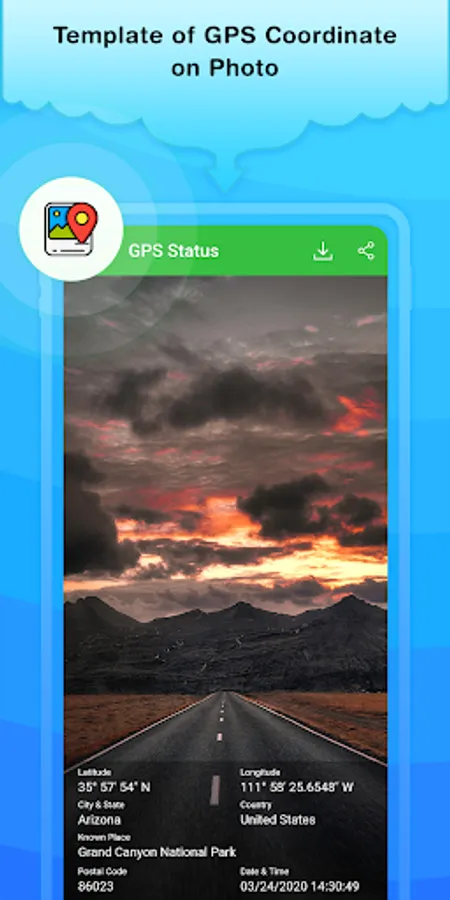 Save Location of your place, Share Location, share photos having GPS Coordinates, and keep exploring with "GPS Status: Send Geotag Photos & Share my Location" the Application.
