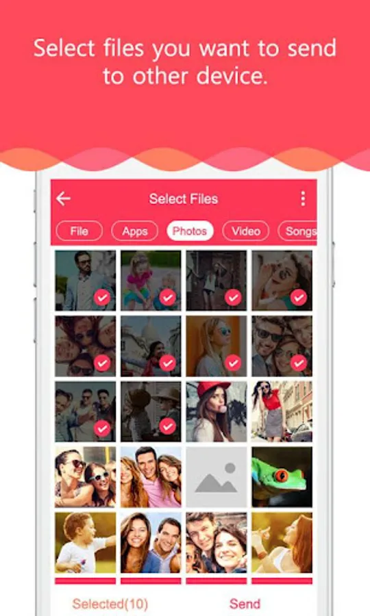First select files and easily select the friend device in radar