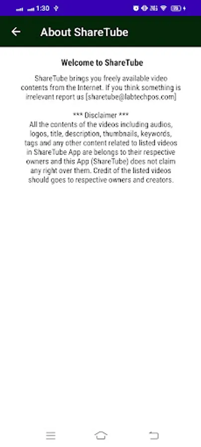 All the contents of the videos including audios, logos, title, description, thumbnails, keywords, tags and any other content related to listed videos in ShareTube App are belongs to their respective owners and this App (ShareTube) does not claim any right over them. Credit of the listed videos should goes to respective owners and creators.