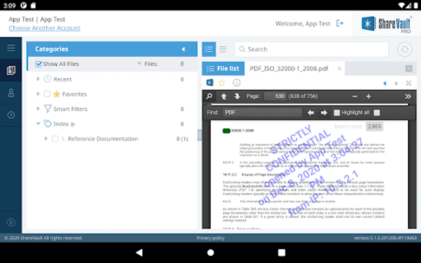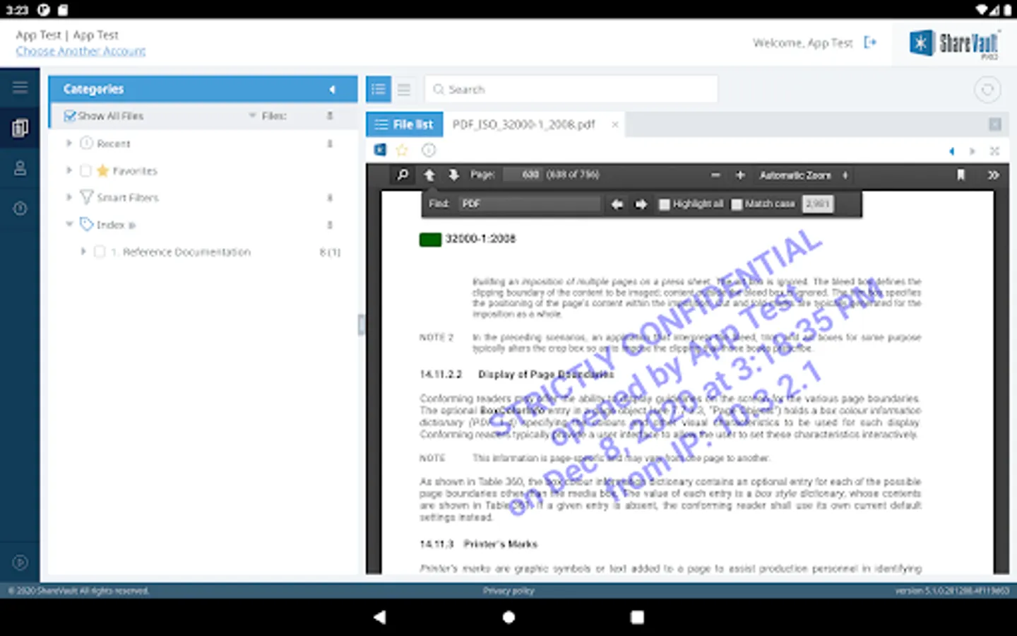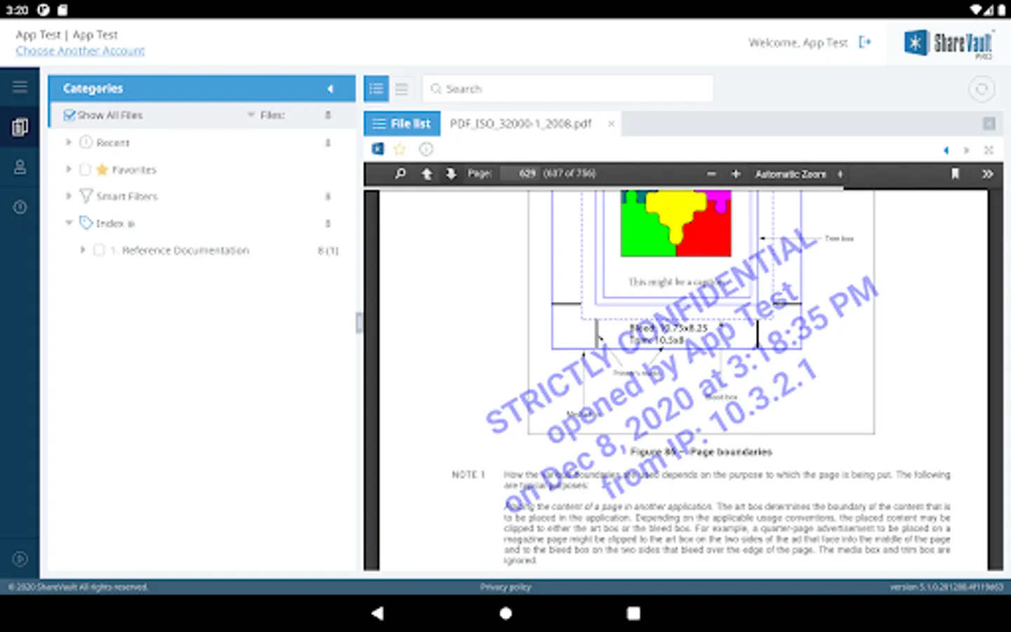 • Integrated Secure Document Viewer: ShareVault's Android secure document viewer is built-in to ShareVault for Android, and provides the full suite of ShareVault security and tracking features, while providing a fast, smooth and accurate document viewing experience.