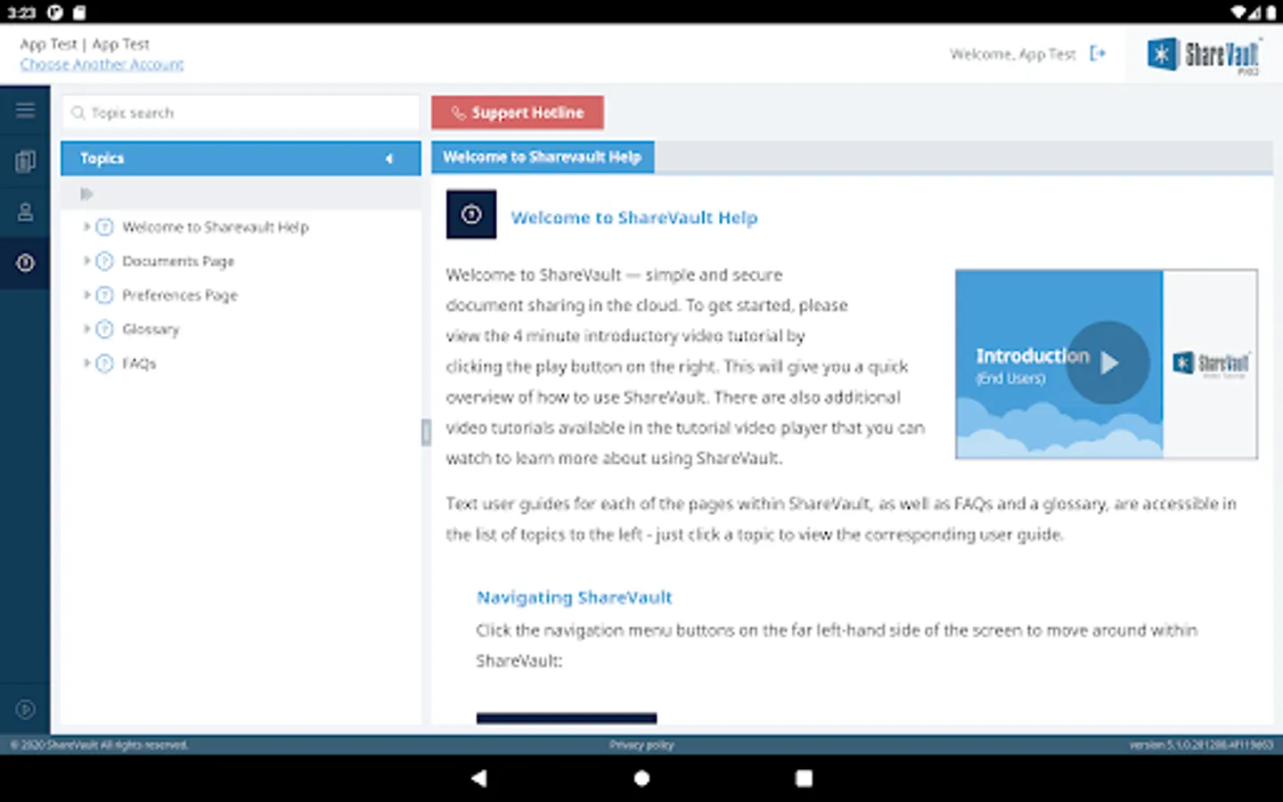 • ShareVault for phones provides mobile browsing, searching and viewing of documents, as well as basic administrator features such as adding users and groups. The phone app does not yet support ShareVault Q&A, and many of the administrator features are not available due to the reduced screen size.