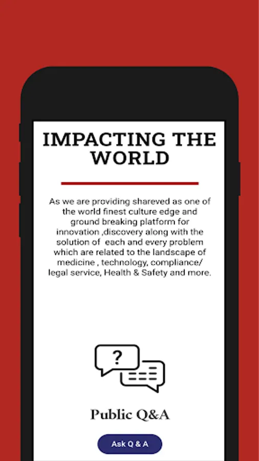 Shareved as one of the world finest culture edge and ground breaking platform for innovation , discovery along with the solution of each and every problem which are related to the landscape of medicine , technology, compliance/ legal service, Health & Safety and more.
