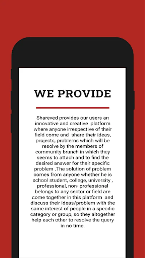 our users an innovative and creative platform where anyone irrespective of their field come and share their ideas, projects, problems which will be resolve by the members of community branch in which they seems to attach and to find the desired answer for their specific problem .The solution of problem comes from anyone whether he is school student, college, university , professional, non- professional belongs to any sector or field are come together in this platform and discuss their ideas/problem with the same interest of people in a specific category or group, so they altogether help each other to resolve the query in no time.