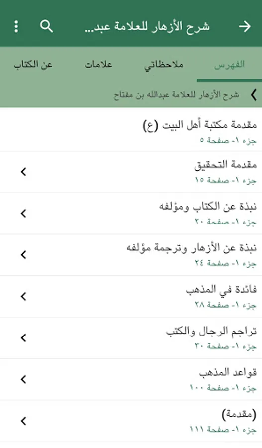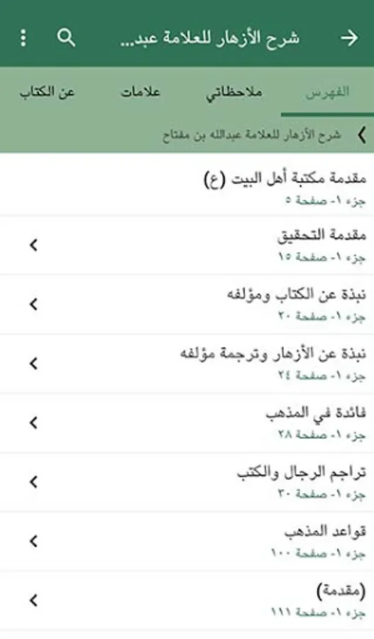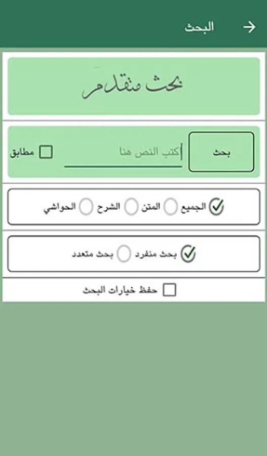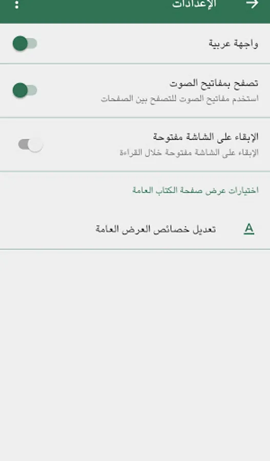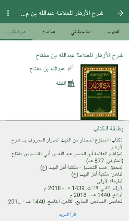 ▪ Browse the book directly and enter full screen mode directly and move between the pages of the book by sliding the screen left and right or through the volume buttons and the option to browse the book in voweled or unknoted.