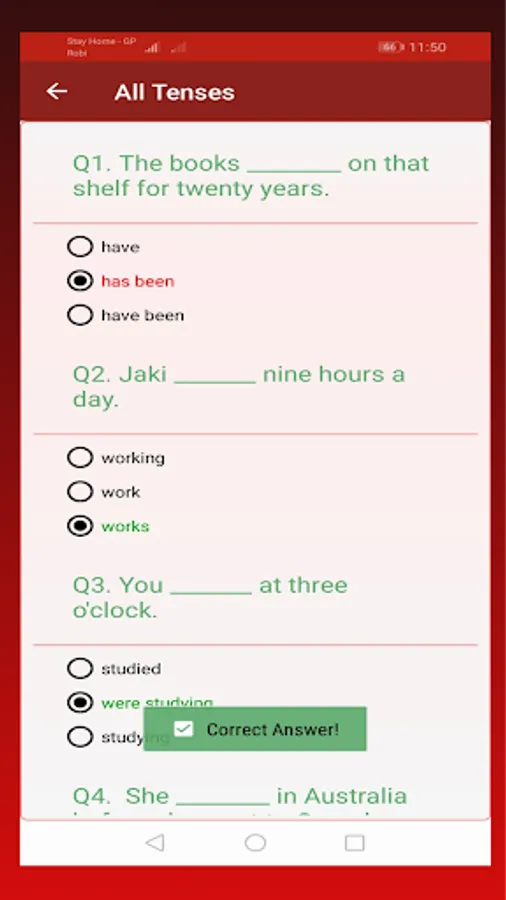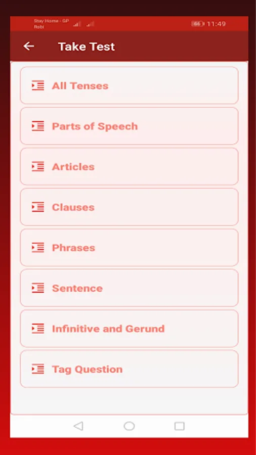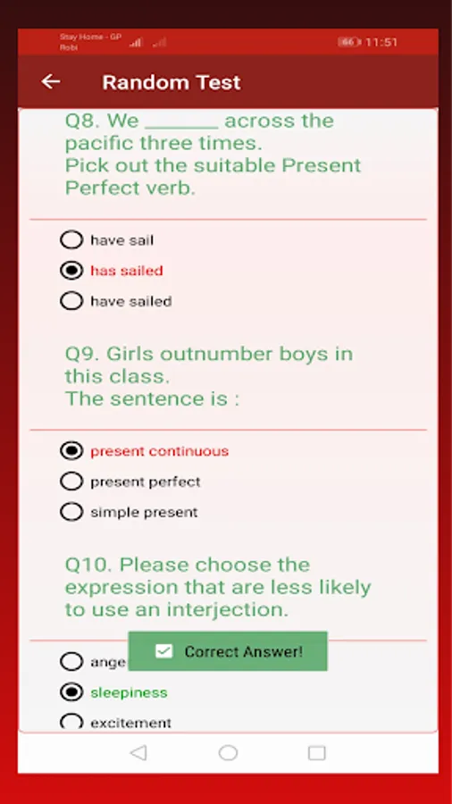 English Grammar Test app mainly focuses on to learn English grammar rules with proper example and structure of the sentences. So you can learn how to form the correct sentence with correct tense by using this English grammar practice app.