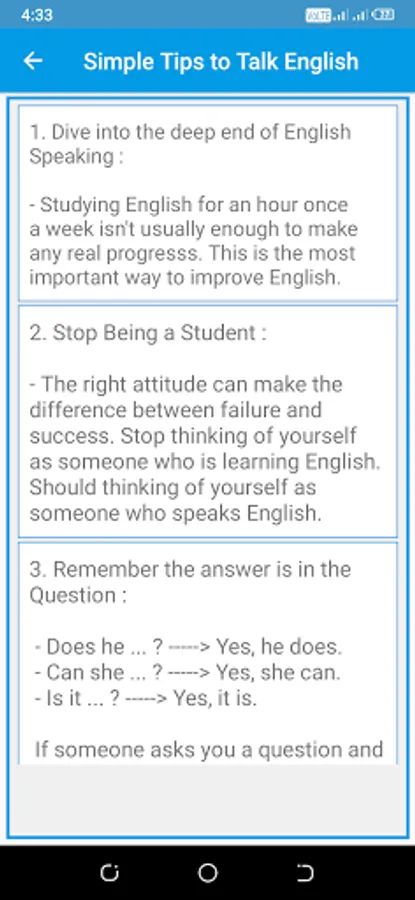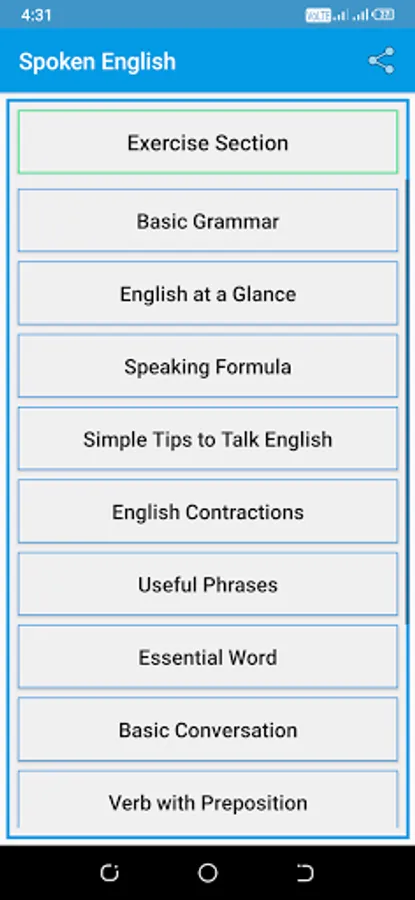 Spoken English, you have to read a lot. Read all of the contents of this app thoroughly. Other than reading, the best and perhaps the only way to increase your fluency in English, is to practice speaking and writing as much as you can.