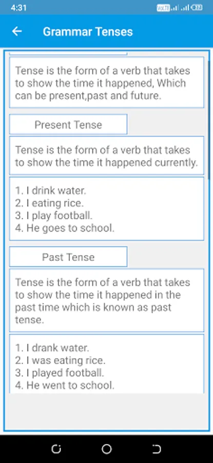Spoken English is an application include English grammar tense, specially made for the people who want to speak English fluently. English Spoken is most important for everywhere. This application help you to improve your English spoken skills and also help to get a good result any English Language.