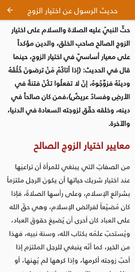 حديث الرسول عن اختيار الزوج وأسس اختيار شريك الحياة ومعايير اختيار الزوج والزوجة والثقة والإخلاص والنُضج وتحمّل المسؤوليّة والقُدرة على التواصل الجيّد مع الشريك والتمتع بشخصيّةٍ مميّزة وجّذابة ومعايير أخرى لاختيار الأزواج المُناسبين واختيار الأزواج المُناسبين شريك الزواج