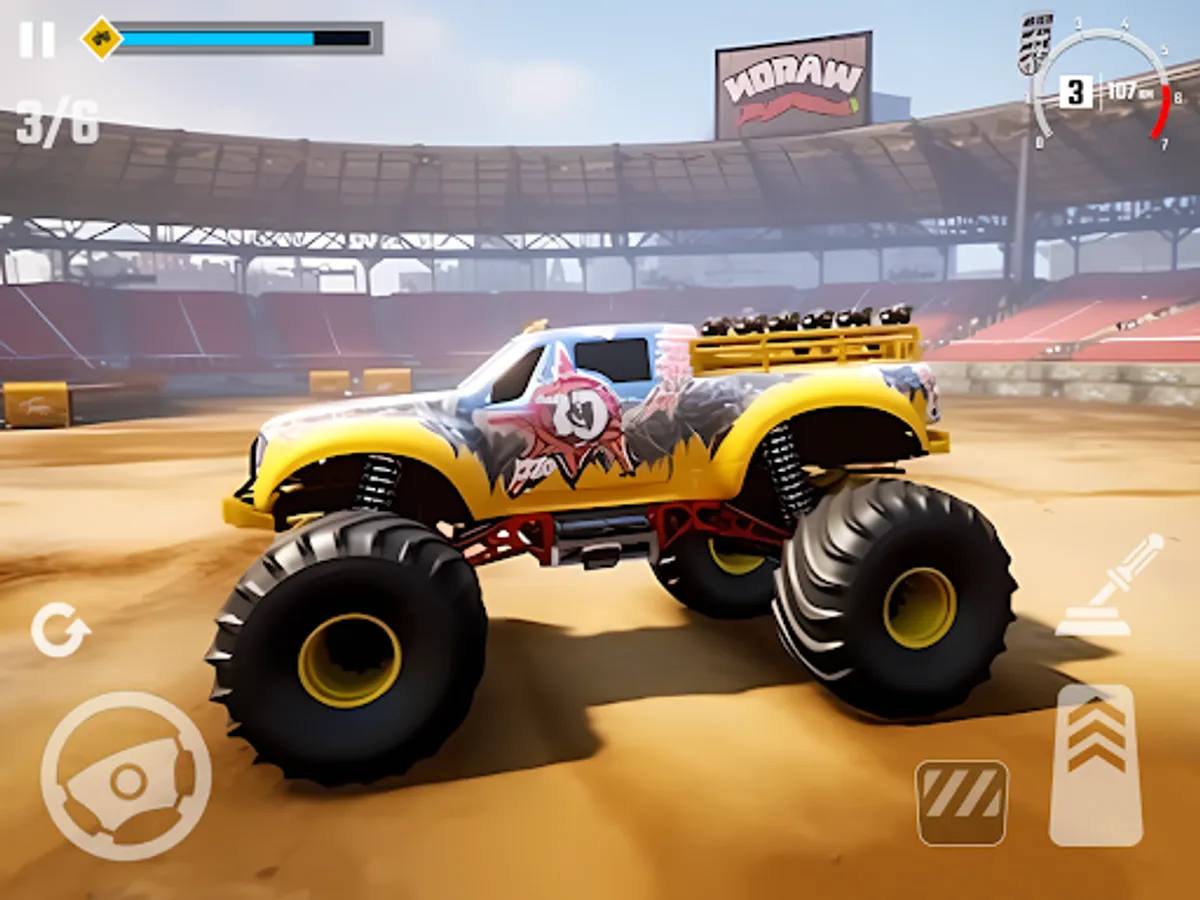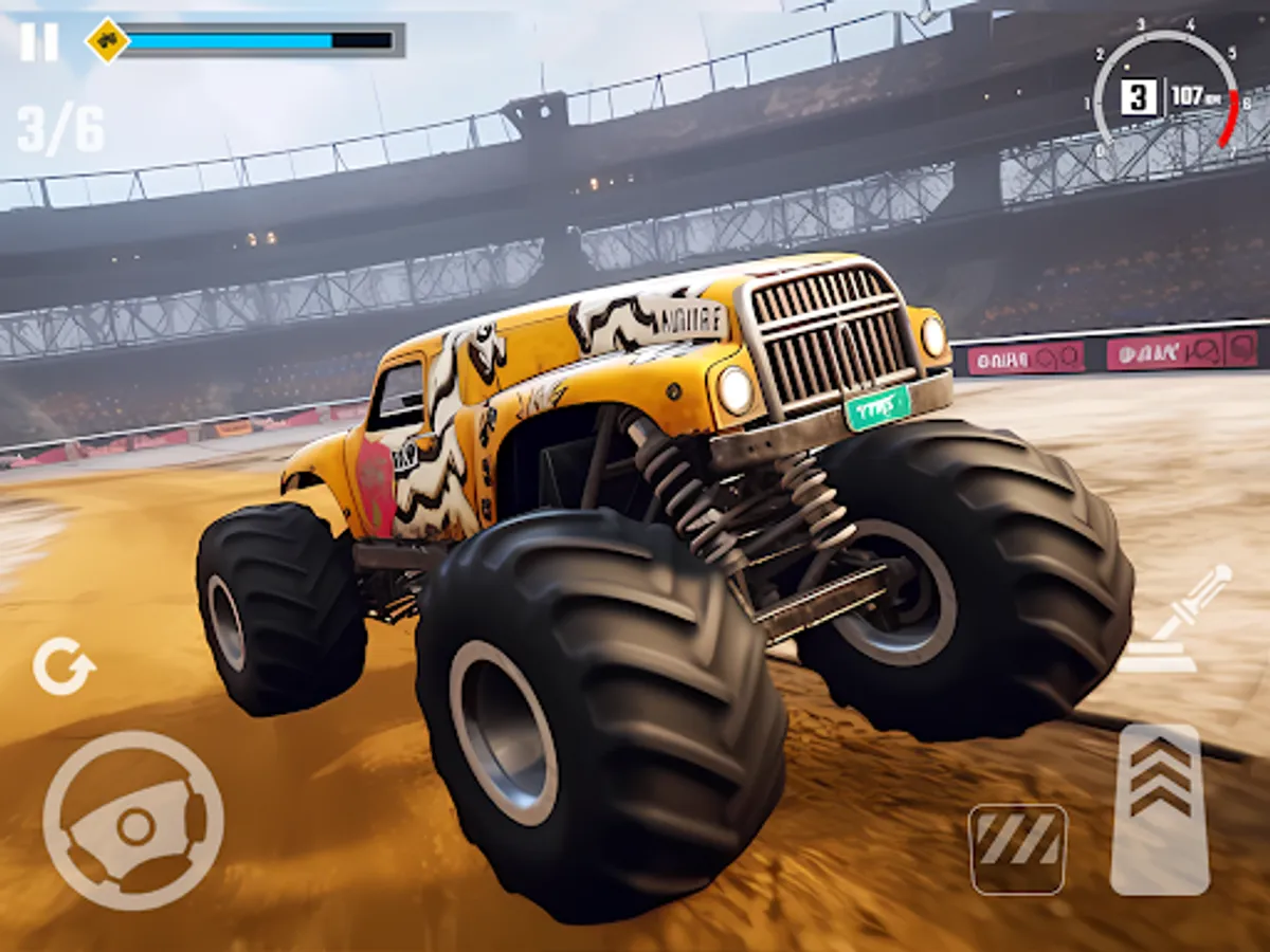 1-Crash and destroy all the rival monster trucks and cars in the derby battle.
