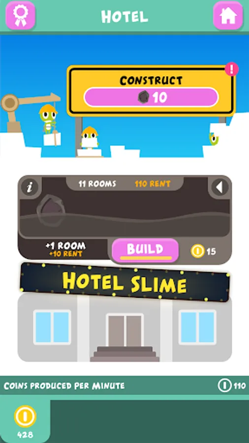 You are the owner of hotel slime, build your tower to richness! Attract new slime guests in this fun idle game. Play at your own pace - frog will help you build up in the background.