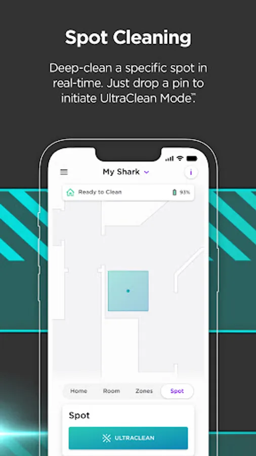 ● Customize cleaning by immediately sending your robot to clean specific rooms and zones from the SharkClean app.