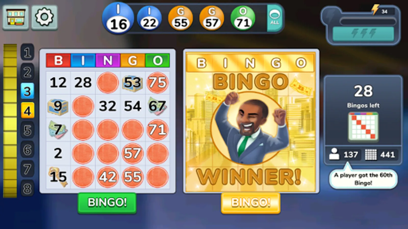 Play Bingo Tycoon with more bingo cards than any other bingo game! Try your luck by playing with up to 8 bingo cards simultaneously, using smooth controls to easily switch between them. Unlock more bingo cards and complete Tycoon collections!