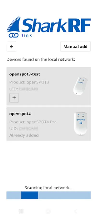 The SharkRF Link app lets you open the management web interface of your SharkRF devices based on their UIDs.