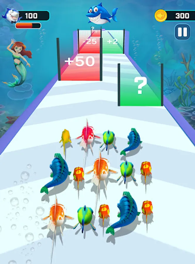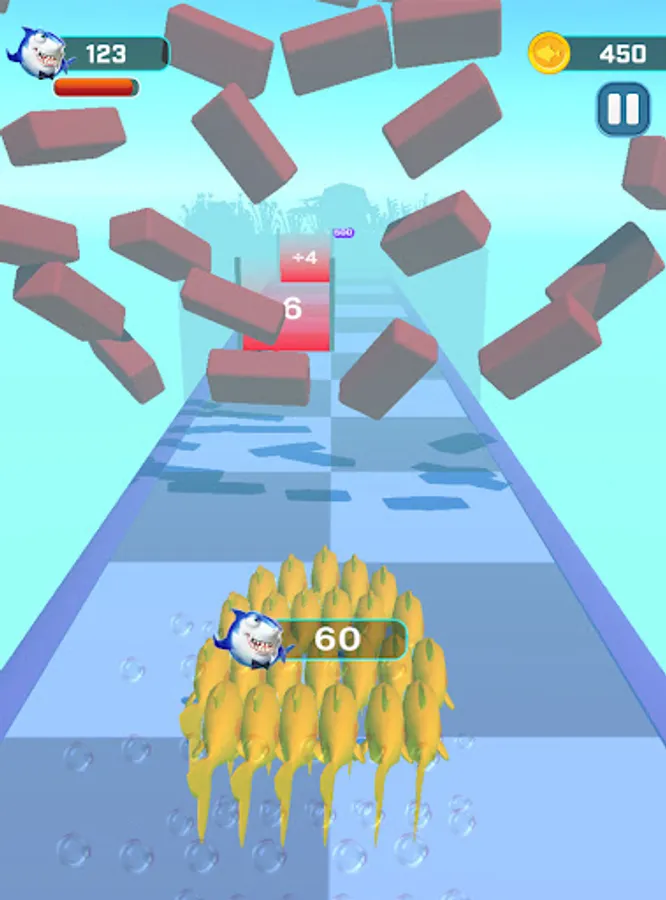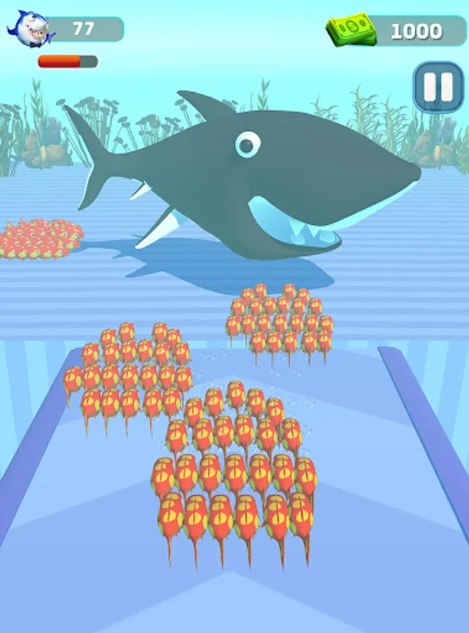 Play shark runner game. Run, multiple and eat it all! Play as a shark, control your shark fish, touch the most number gate. Multiple your count and break all hurdles on you way. Reach the maximum number of group of sharks and eat all the other sea animal at the end of the race. Tap gameplay with smooth shark controls. An amazing and colorful graphics. Addictive gameplay that will you give you thrill fun. Merge with sharks and fishes to become powerful group of sharks.