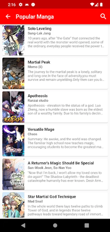 4. **Search Manga**: Find manga effortlessly by searching for specific titles, authors, or genres. Our user-friendly search feature ensures you can access your preferred manga with ease.