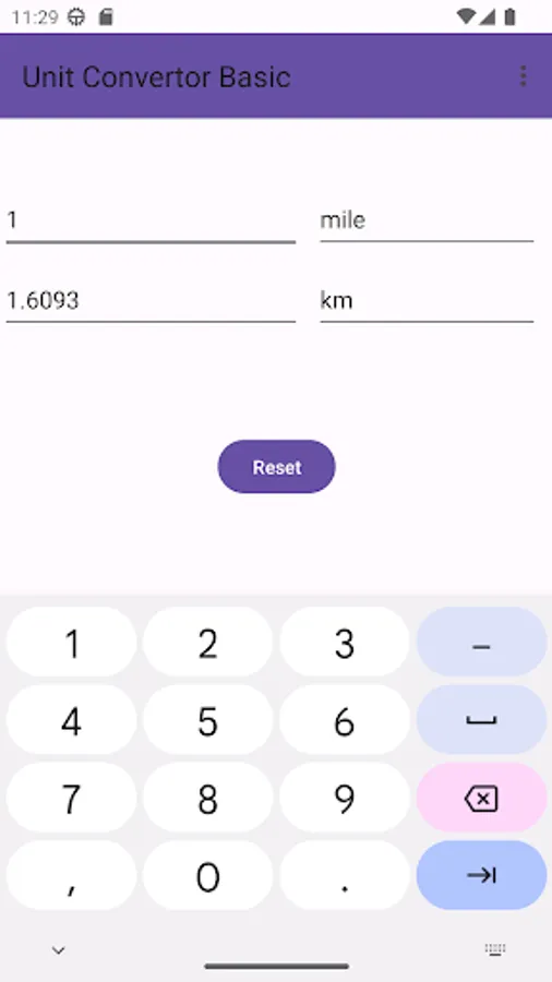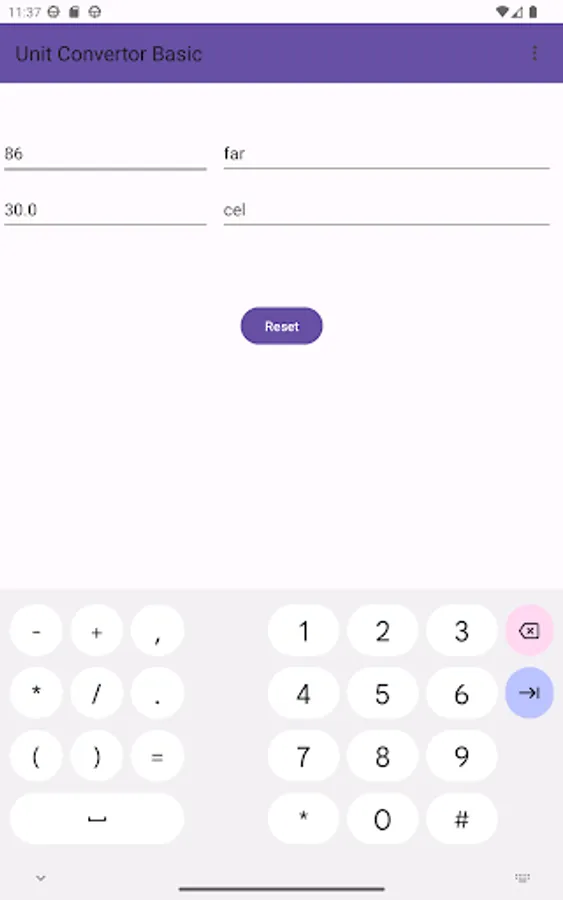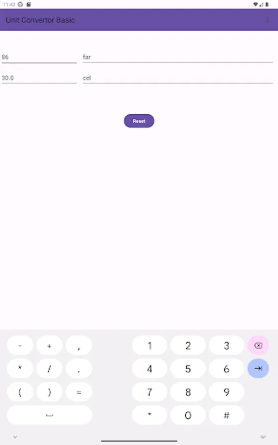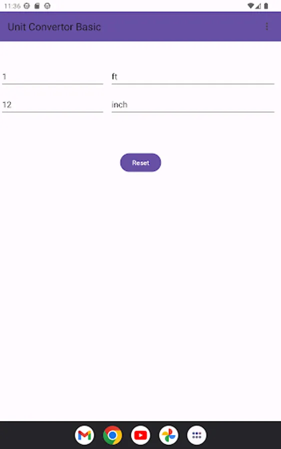 app will convert a unit to another unit. You enter a unit value in the field and its unit type. Then enter the new unit in the field provided.