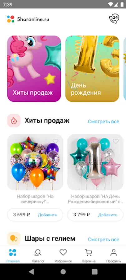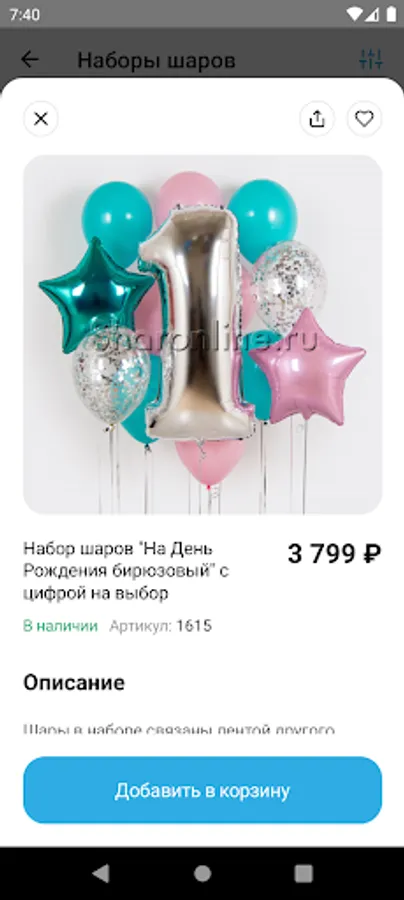 In the Sharonline.ru application, you can purchase figures from balloons of any complexity, find a set of helium balloons for every taste and color, buy everything you need for table setting and order a bouquet of flowers. A wide range of our catalog allows anyone to find something to their liking.