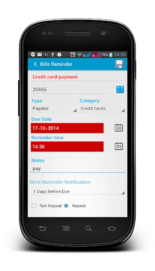 Remind Your all bills before a due date .So don't forget and pay extra money for it .This is a easy remind your bills with many great features