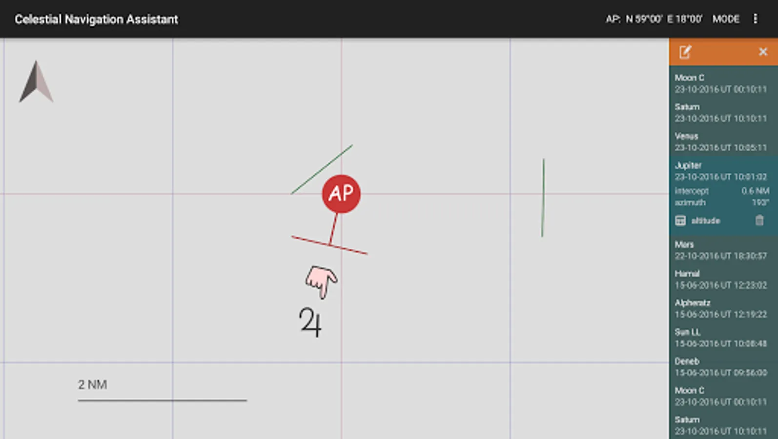 Use this offline compatible app to plan/enter sights and inspect the resulting lines of position.
