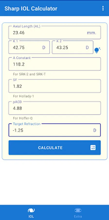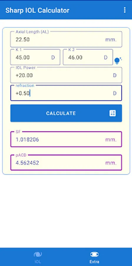 An easy to use and accurate app to calculate the intra-ocular lens power.