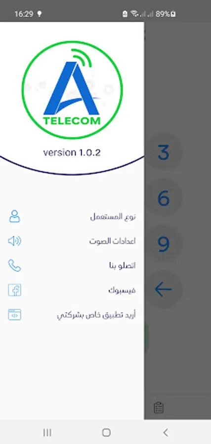 Interface with the customer's phone panel that contains all the settings (regular recharge, Makitvia recharge, invoice)
