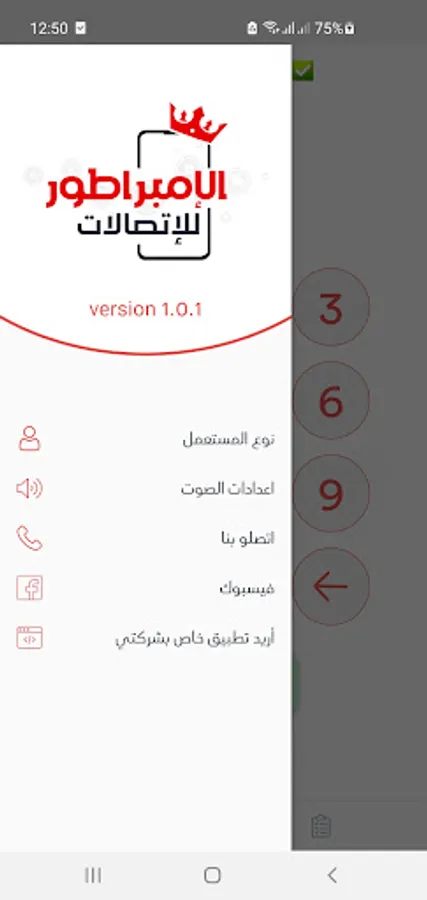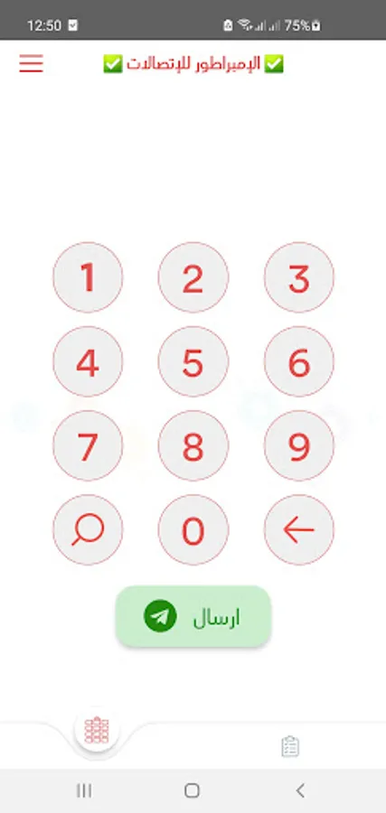 Interface with the customer's phone panel that contains all the settings (regular recharge, Makitvia recharge, invoice)