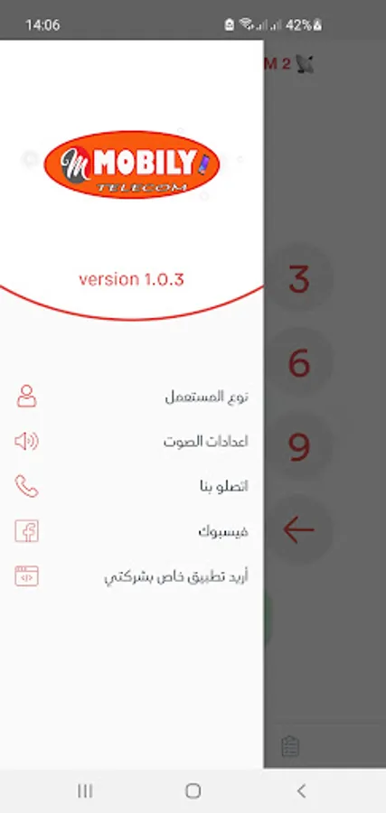 Interface with the customer's phone panel that contains all the settings (regular recharge, Makitvia recharge, invoice)