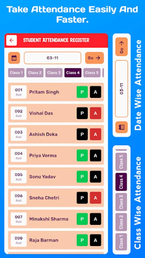 1. Student Attendance Register :- We know that every school maintains this register in physical format regularly. But by maintaining this register in SDM (this application), our respected teachers can find the Present and Absent status of any students of the entire year in a very easy way at their fingertips anytime, anywhere.