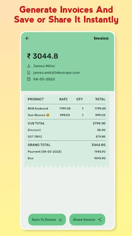 Invoice Generation: By using the InStock Application, you can Generate GST and Discount-enabled Invoices Instantly without any problem, and you can also save or Share them with Anyone.