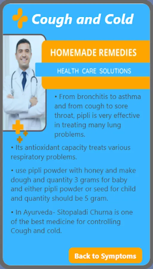 When you face the general health issues like and indigestion of food, signal flu, vomiting, dehydration, cough and cold, skin burn, heat, nose bleeding etc in night or holidays or public holidays when doctors not available generally on that time this app will help you and will give some time for waiting of doctor.
