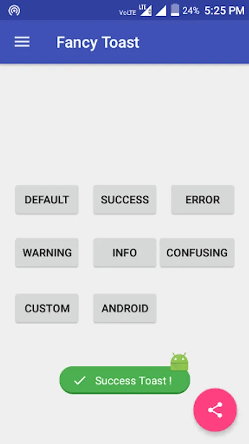 Make your native android Toasts Fancy. A library that takes the standard Android toast to the next level with a variety of styling options. Style your toast from code.