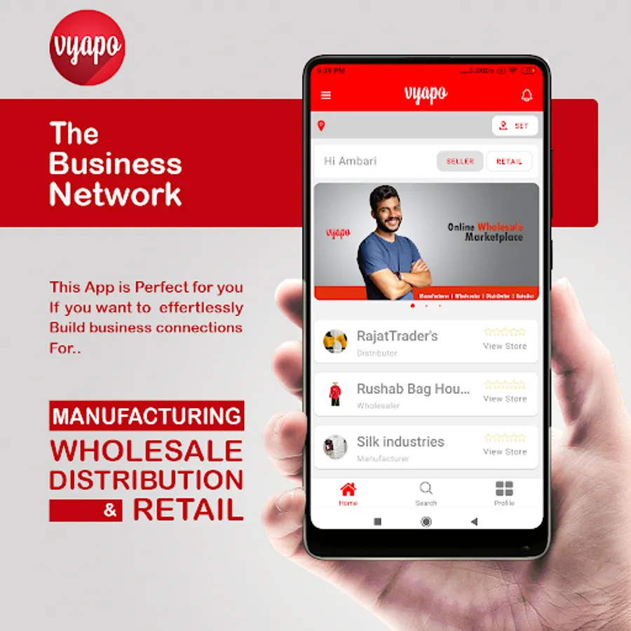 Vyapo is a B2B2C marketplace. Taking care of a product from Manufacturing to the end customers. We are setting a systematic trade process in the B2B segment. Manufacturers, Wholesalers, Distributors and Retailers can get connected on a single platform. Vyapo helps merchants to search for suppliers.