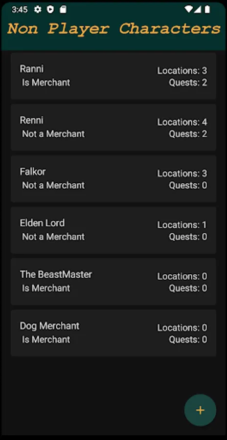 Stop flipping through massive notebooks, or losing your notes entirely, while trying to keep track of your role-playing game progress. Save and easily search for non-player characters, game world locations, and quests in your favorite RPGs. Track NPC locations and quests, filter on complete or incomplete quests and locations, and view at-a-glance stats for your games. Must-have companion for massive RPG video games like Elden Ring, or your favorite Dungeons and Dragons campaign.