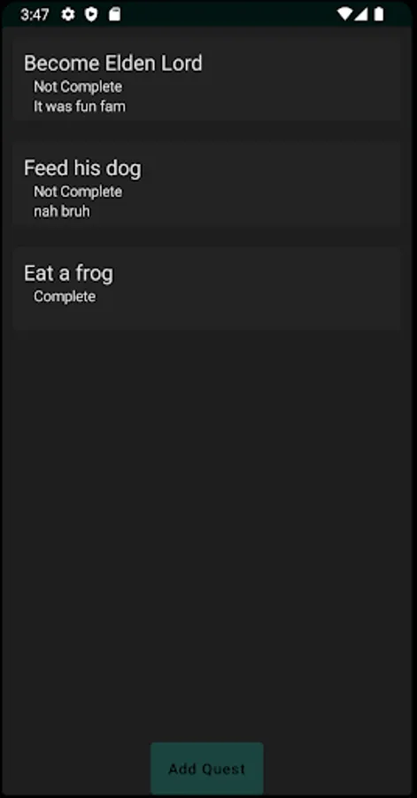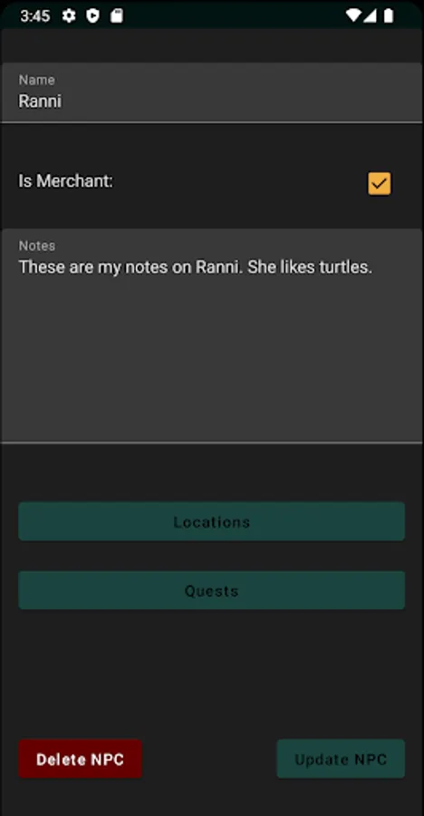 But locations and quests aren't tied to NPCs alone! Enter quests you stumble across as you explore large, open-world video games. Or enter locations into the app when you discover new points of interest, and store details to remind you to come back later, such as the presence of a helpful merchant or a note that you didn't clear so you can come back later to see if there's any good loot.
