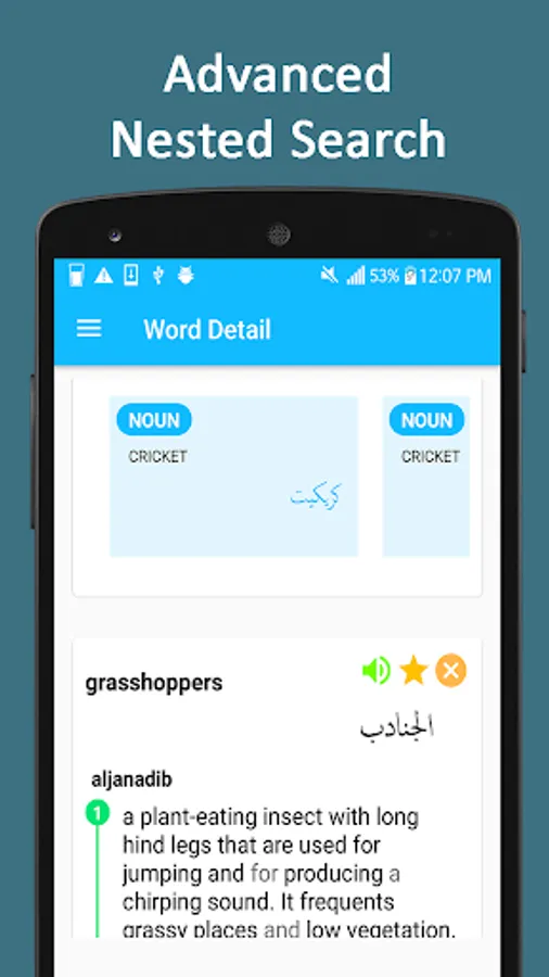 This English to Arabic dictionary has huge repository of Arabic words and all these Arabic words are available offline.