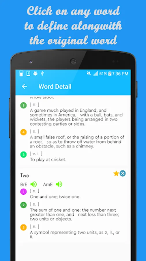 The English Dictionary Offline has also an innovative way of searching words within the definitions of other words. We call it the nested searching.