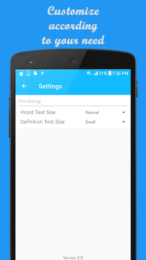 Now with this english dictionary, you can easily change the font size of the words which suits you. The font size ranges from extra small to extra large.