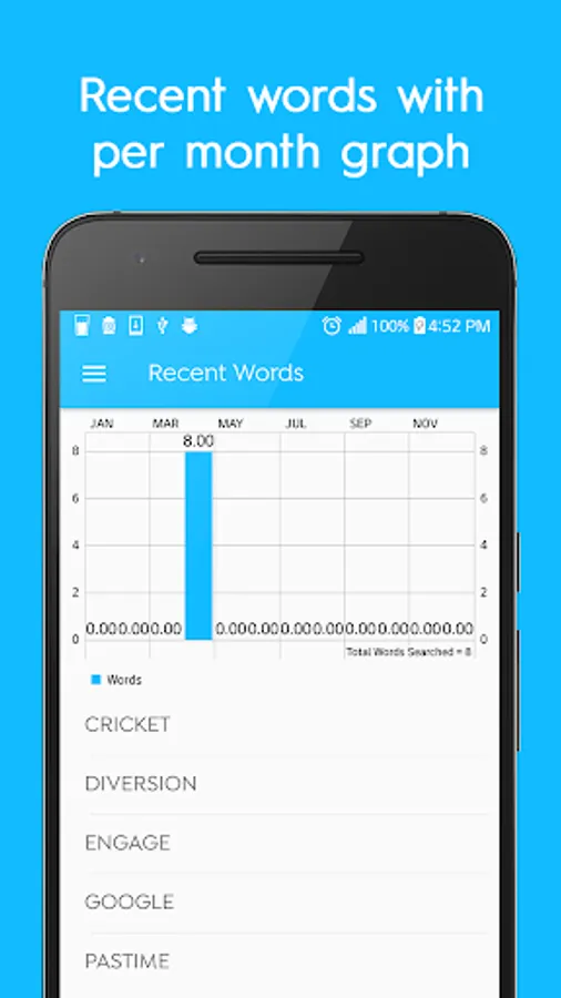 English to English Dictionary meets the needs of all English speakers and learners of the whole world. This dictionary tells about the grammatical category, parts of speech, synonyms, hyponyms, antonyms, and hyponyms with real world examples. Strong suggestion base search and spell checking algorithm is implemented, which make your search faster and accurate. Book mark facility is added to add your favorite words in a separate list for future understanding. You can also check your recent search history.