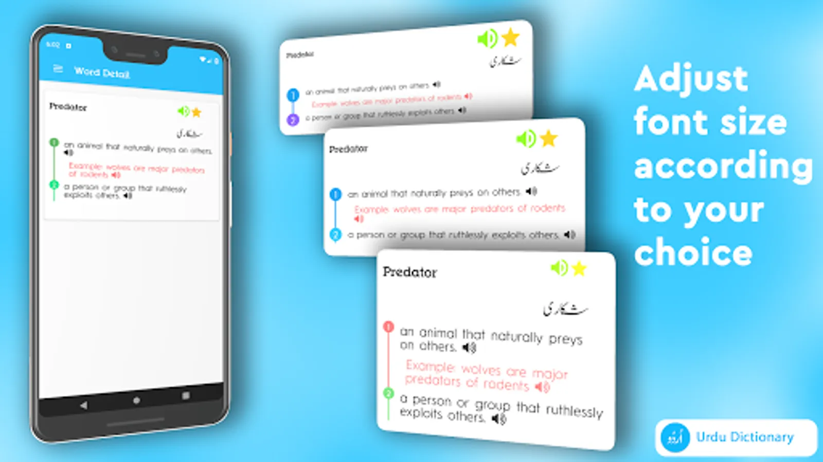 Offline Urdu English Roman Dictionary is a dictionary learning application for all users who want to learn English Language. Free English to Urdu Dictionary can be used for learning English to Urdu translation and pronunciation. The App (English to Urdu dictionary) giving meanings from Urdu to English and Roman to English or Urdu but the Urdu and English Dictionary app also gives the common functionality of English to Urdu words meanings. Therefore one can find Urdu meanings of English words in this dictionary just like an English dictionary.